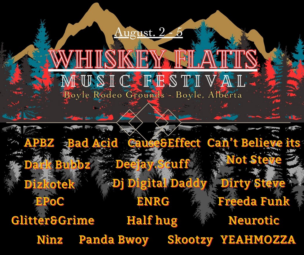 Whiskey Flatts Music Festival is a small intimate festival with big festival vibes nestled in the beautiful landscape of north-central Alberta only two hours north of Edmonton, featuring local Alberta talent and provide top-of-the-line audio and visual production.